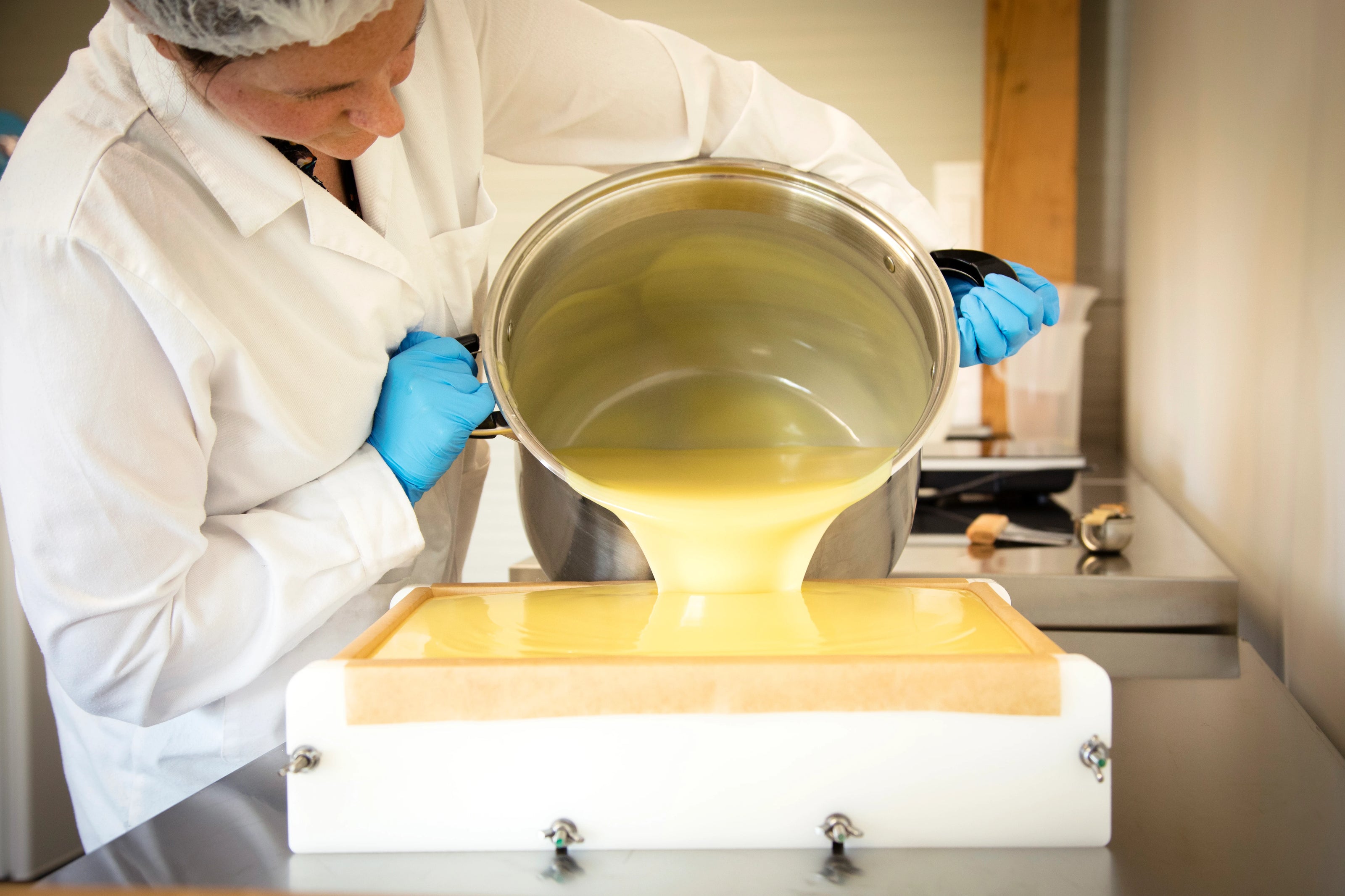 - travailler uniquement avec des huiles végétales de première pression à froid bio, des beurres végétaux bio, des hydrolats bio, des conservateurs acceptés en bio ainsi que du lait de chèvre frais et local